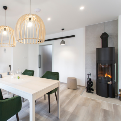 Srdcem domova bývají kamna. V našem případě krbová kamna OVALIS GRANDE. Jejich jednoduchý oválný tvar s prosklením ve střední části propojuje obývací a kuchyňskou část. Proměna se povedla.